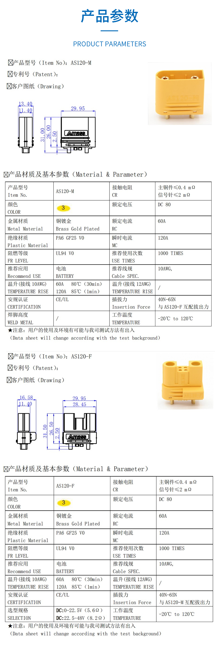 艾邁斯AS120帶信號針插頭無人機植保機鋰電池2+4防打火AMASS熱賣
