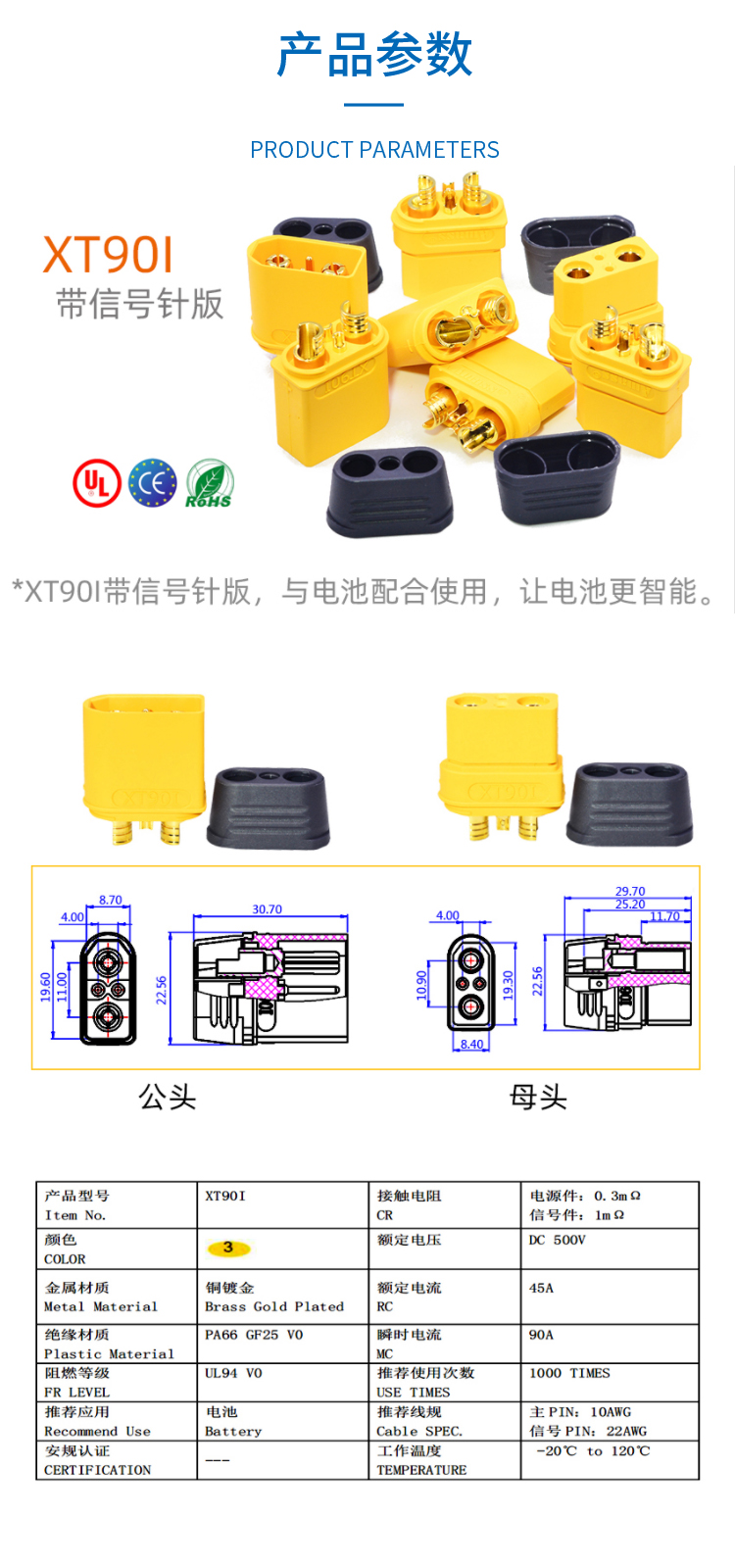 艾邁斯XT90I 雙信號(hào)針航模連接器XT90(2+2)插頭AMASS正品模型配件