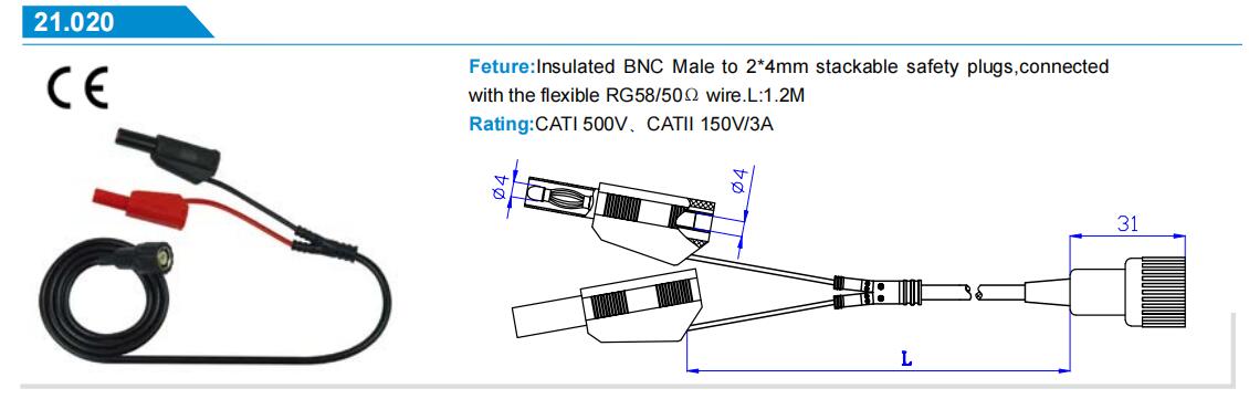 21.020 艾邁斯BNC轉(zhuǎn)換線(xiàn),全保護(hù)型BNC公轉(zhuǎn)2*4mm安全插頭,線(xiàn)長(zhǎng):1.2M AMASS