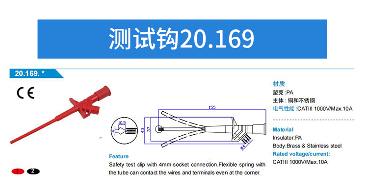 艾邁斯33.310萬用表測試組套含尼龍包鱷魚夾測試鉤針導(dǎo)線線長1米