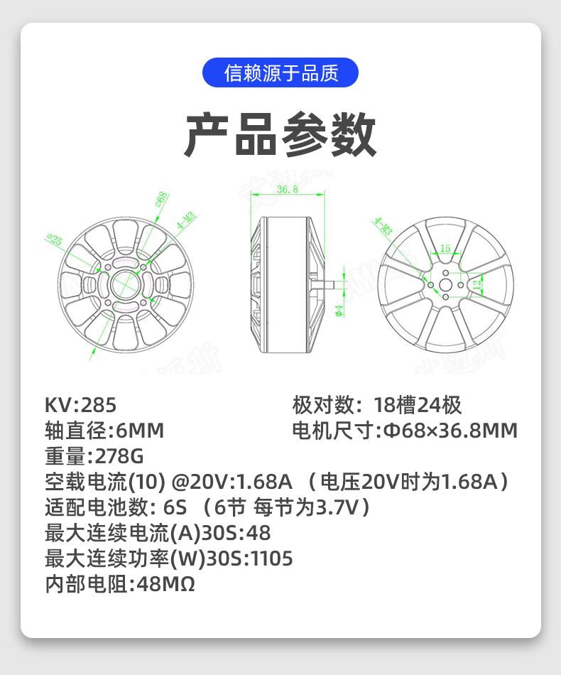 B6015-285KV航模電機(jī) 多軸飛行器飛機(jī) 航模盤式無(wú)刷馬達(dá) 一盒1個(gè)