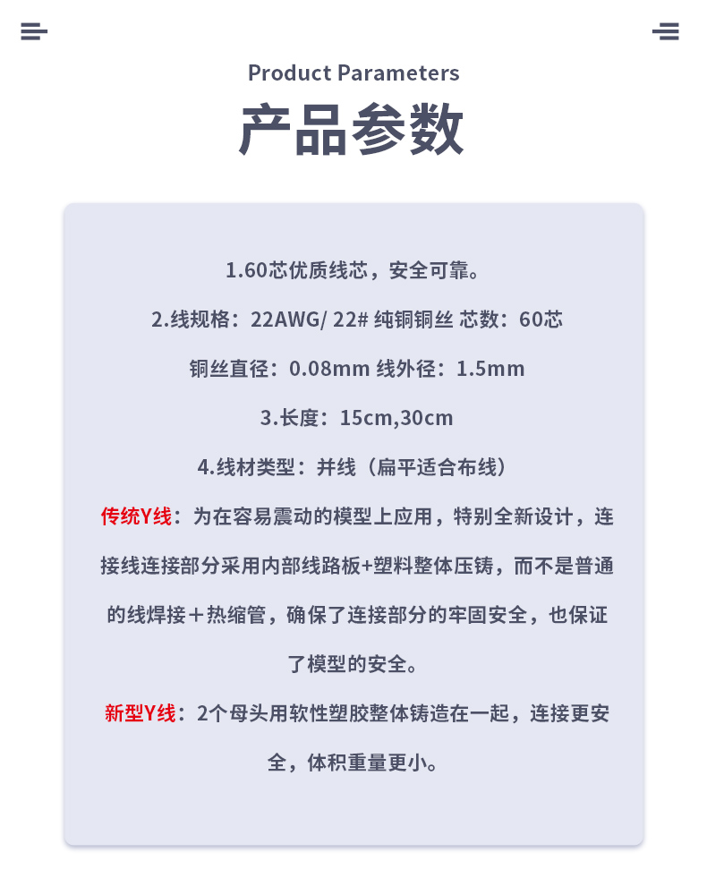 AMASS出品 JR傳統(tǒng)/新型Y線延長線 航模連接線22AWG并線 三色PVC線