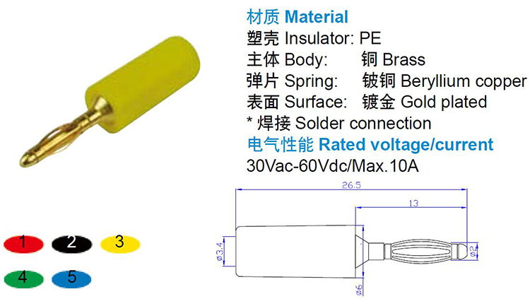 25.203 純銅鍍金2mm香蕉插頭焊接型實(shí)驗(yàn)測(cè)試線插頭PE耐電流10A