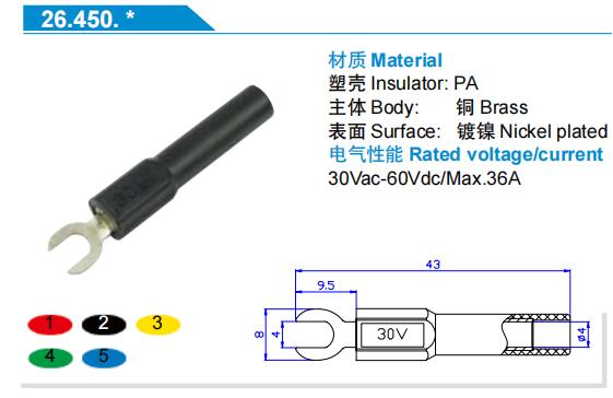 艾邁斯26.450 U型叉香蕉插頭開口4MM 4mm插孔Y插片電子負(fù)載AMASS
