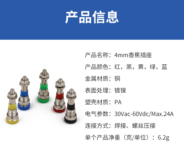 4mm接線柱香蕉插座 純銅鍍鎳 PA護套 24.249 焊接頂部螺母插座面板 耐24A