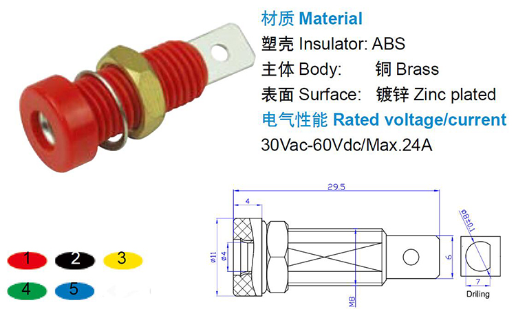 24.244 艾邁斯4mm面板插座耐24A香蕉插座純銅鍍鋅 焊接/6MM插片AMASS正品