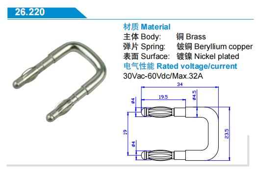 艾邁斯全銅4mm香蕉插頭短路插19mm間距Jumper萬用表校準(zhǔn)插頭AMASS