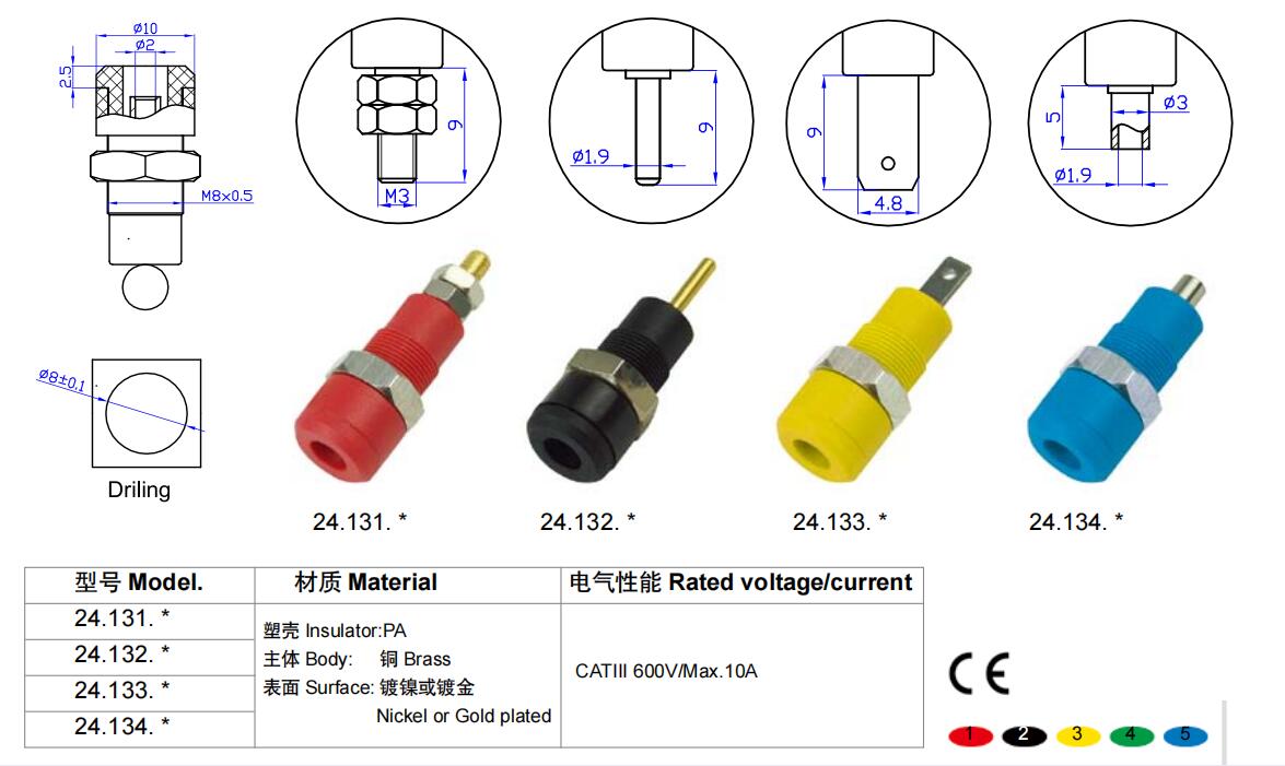 艾邁斯25.454 4mm銅鍍金插座 銅針型銅香蕉插座正品連接器