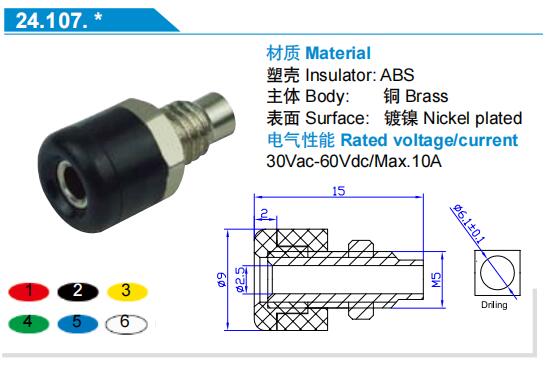 艾邁斯2.5mm面板插座 絕緣鍍鎳電源香蕉插座AMASS正品 24.170