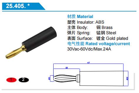 艾邁斯25.454 4mm安全型銅鍍金香蕉插頭 純銅音響插頭AMASS正品